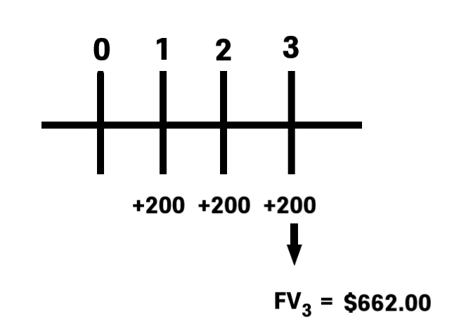 * 매년 말 $200을 3년간 지급하는 (일반)연금의 FV는? (ROR은 10%)