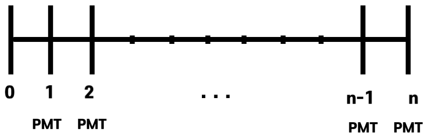PMT(1+ (1+r)+(1+r)2+...+(1+r)n-1)=FV